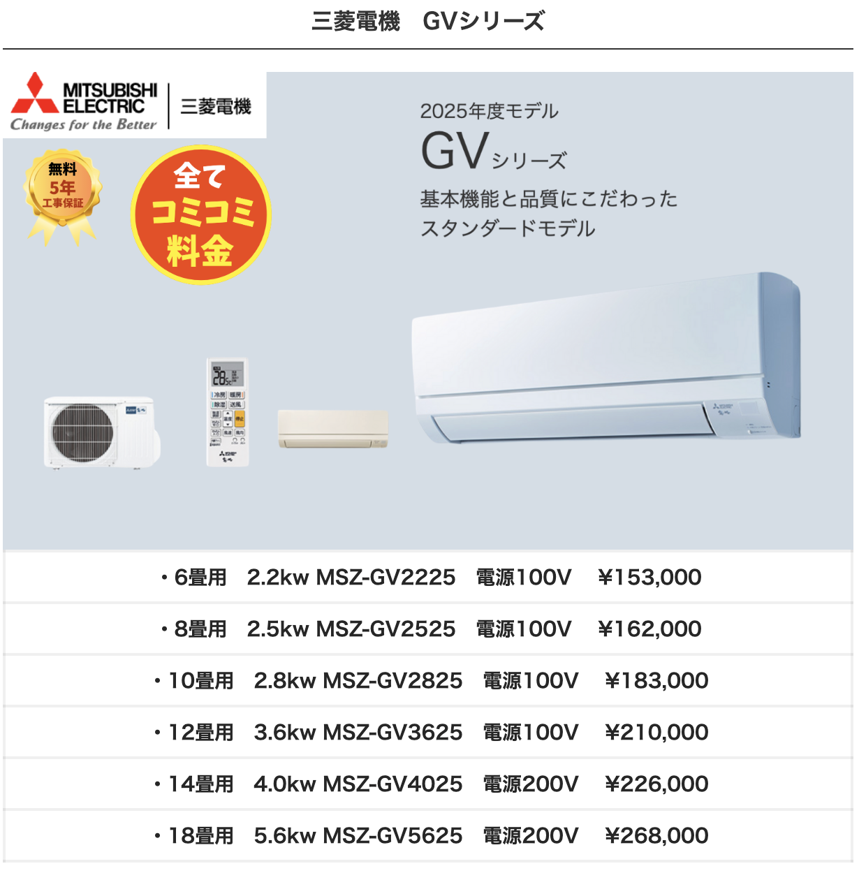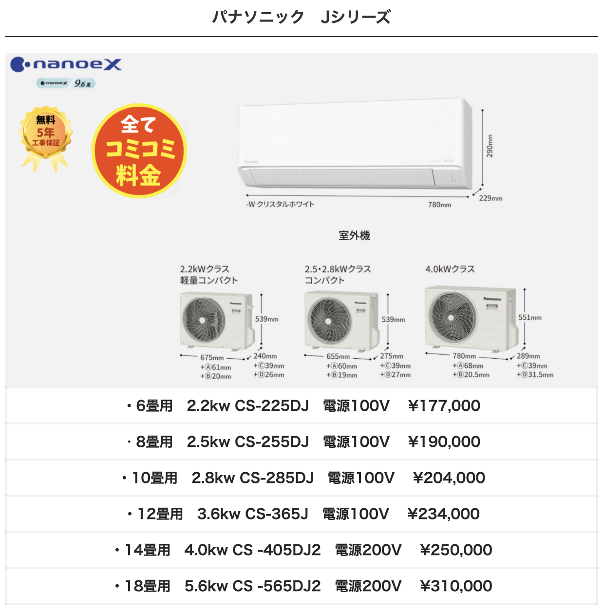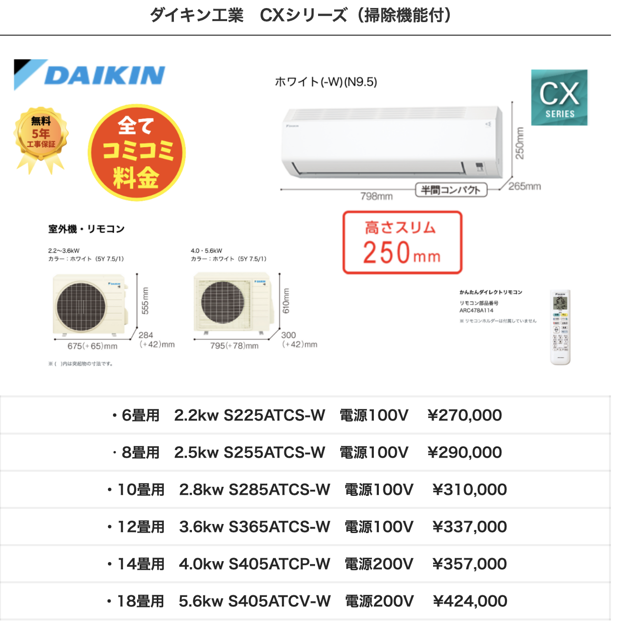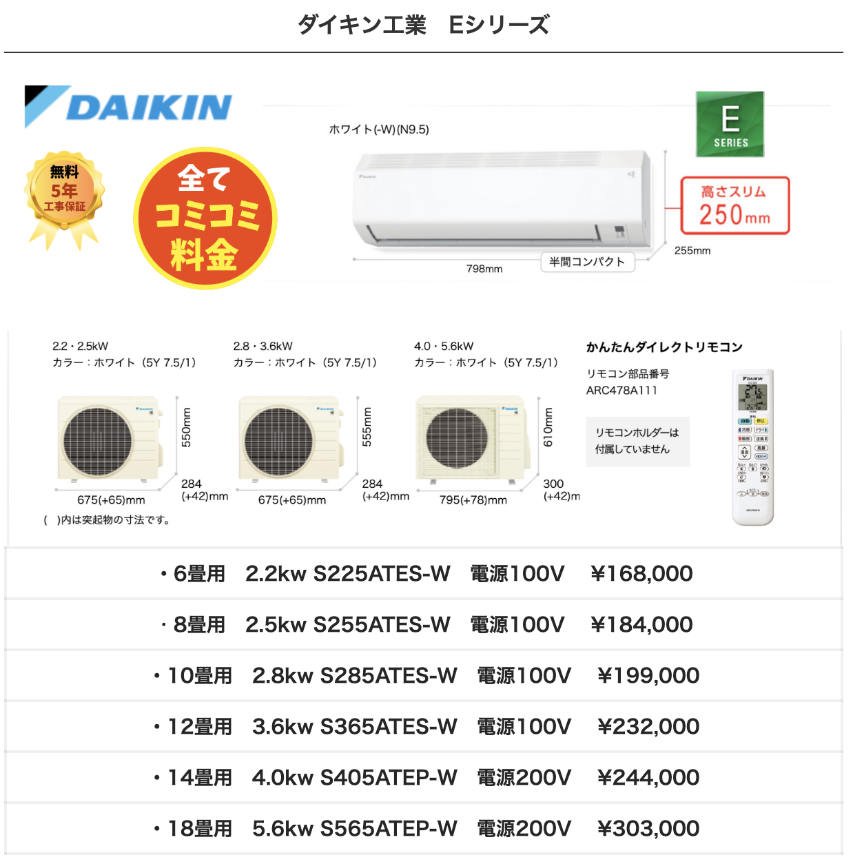 取扱いメーカー:ダイキン工業・三菱電機・パナソニック・日立・富士通・シャープ・東芝等